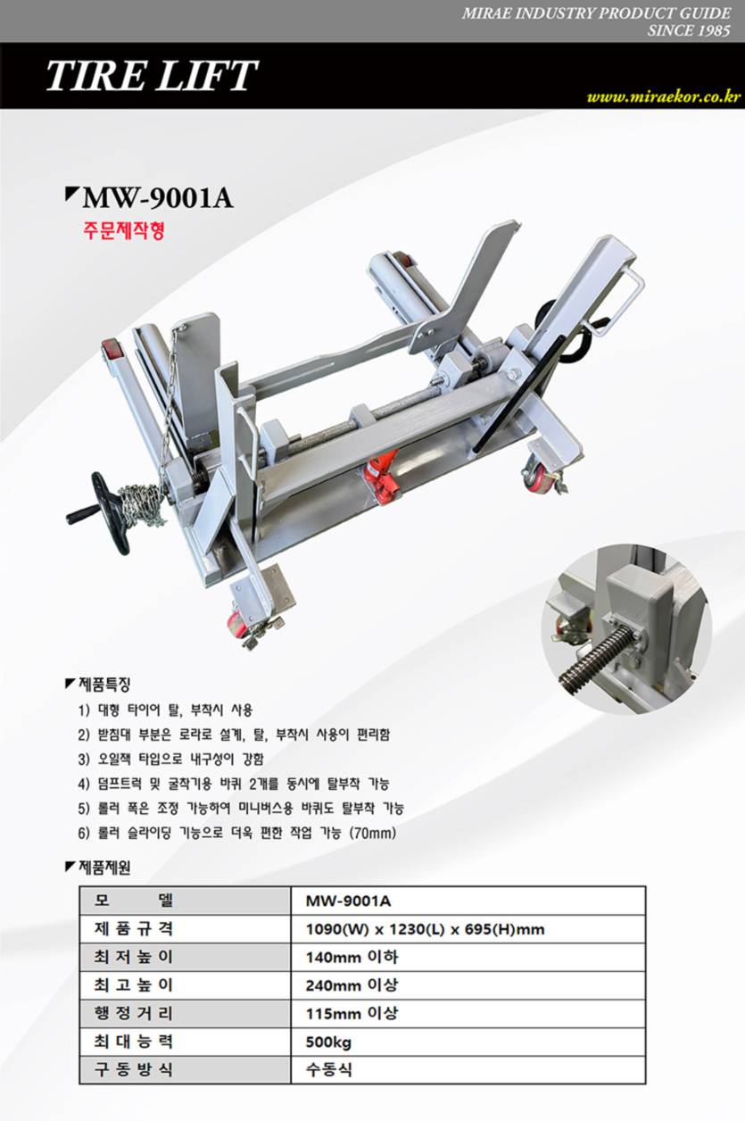 롤러 폭 조정 가능하여 미니 버스용 바퀴 탈부착은 물론, 덤프트럭 및 굴착기용 바퀴 2개를 동시에 탈부착 가능