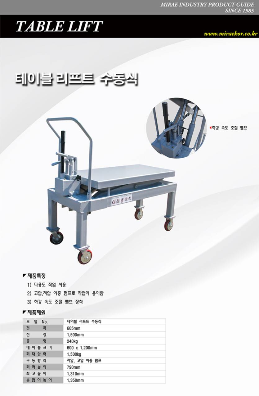 베트남, 라오스 등 해외 자동차 조립 공장 꾸준히 납품 저압/고압 이중 펌프 적용으로 작업 효율 향상 하강 속도 조절 밸브 장착으로 정밀 제어 가능