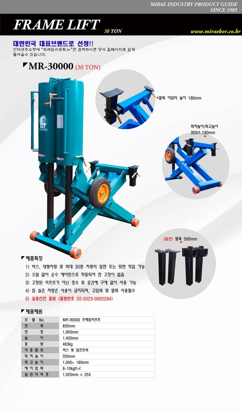 대한민국 최대 여객사, 운송사, 군에서 꾸준히 선택하는 프레임리프트